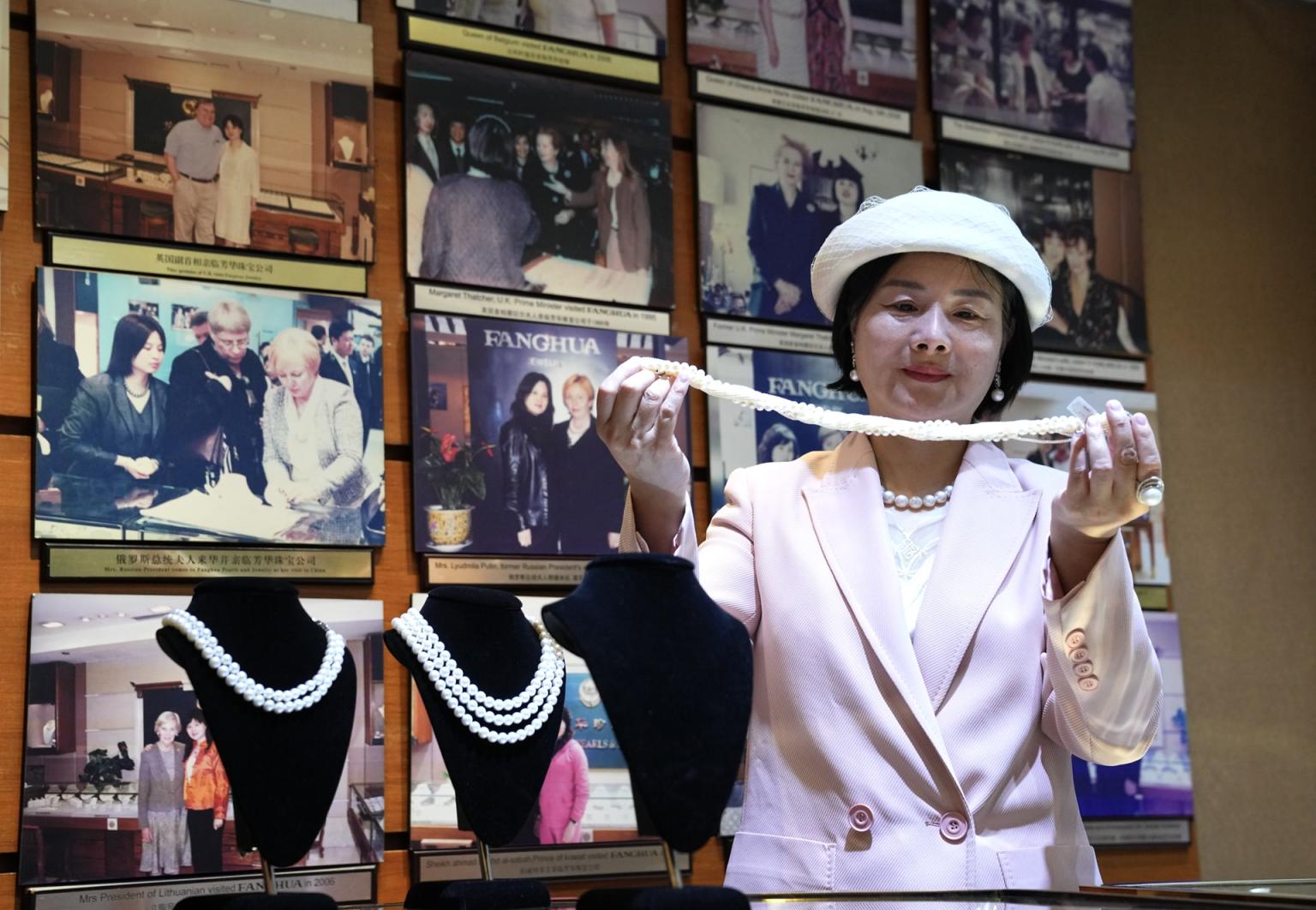 当发现近年选购珍珠珠宝的国内顾客越来越多时,她又针对中国人审美不断开发新品,不断提升品质,并尝试直播带货,在直播间推出售价百元、适合更多人群的饰品化珠宝。面对不同国籍的顾客,她总会优先推荐由中国特色淡水珠制成的“中国礼物”,希望以小小的珍珠为窗口,传播中国文化,展示中国形象,讲好中国故事。